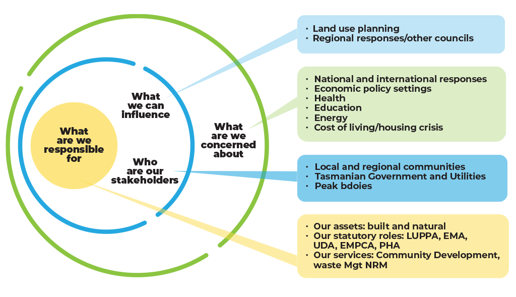 The diagram illustrates what councils are responsible for, what they can influence, and where their key concerns lie.